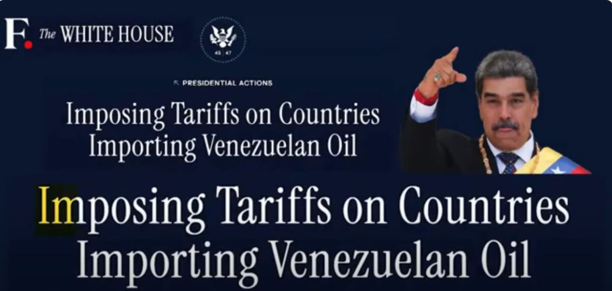 De Amerikaanse president Donald Trump ondertekende woensdag een nieuwe executieve orde die tarieven oplegt aan landen die Venezolaanse olie importeren. Hoewel Trump beweert dat deze maatregel bedoeld is om druk uit te oefenen op het Maduro-regime in Venezuela, richt de orde zich indirect vooral op landen zoals China, die afhankelijk zijn van Venezolaanse energiebronnen.