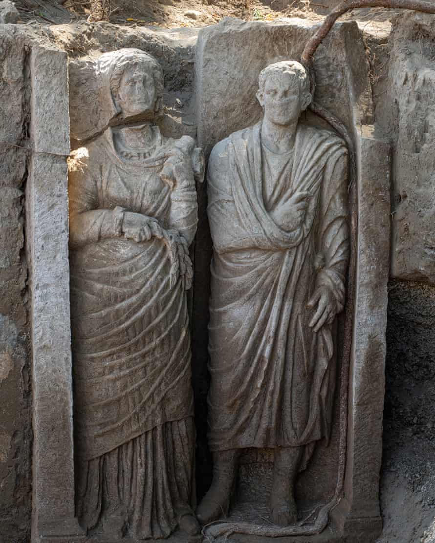 De standbeelden sierden het graf in de necropolis van Porta Sarno, een van de belangrijkste toegangspoorten tot de voormalige stad. Pompeï is in 79 na Christus verwoest door een uitbarsting van de Vesuvius.