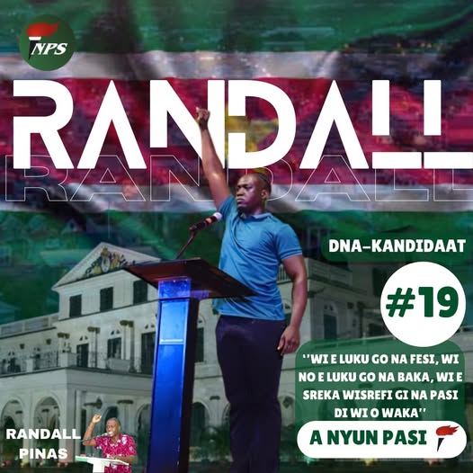 Mijn naam is Randall Pinas, ik ben 21 jaar en ik sta als jongste kandidaat op nummer 19 van de DNA-lijst van de Nationale Partij Suriname. Als jonge politicus vertegenwoordig ik een generatie die snakt naar echte verandering en het lef heeft om die verandering ook vorm te geven.