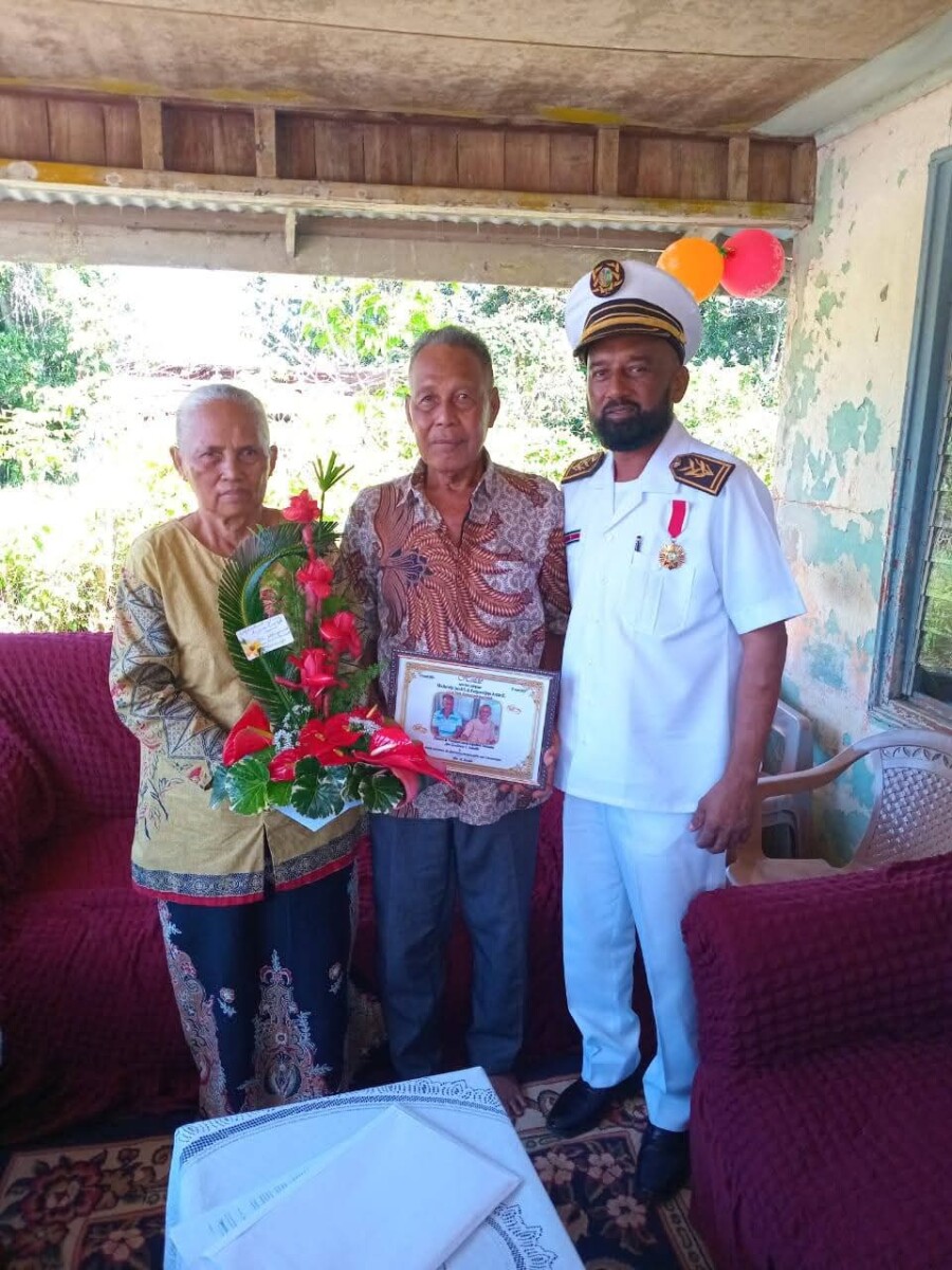Verder mochten zij een bloemstuk en een ingelijste foto in ontvangst nemen, zo bericht het Burger Informatie Centrum Commewijne.