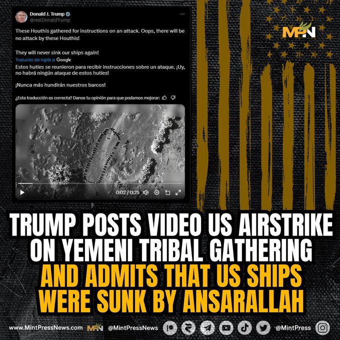 Een gefrustreerd Amerikaans leger slaagt er niet in zijn doelen te bereiken in zijn aanhoudende aanval op Jemen. Te midden van dit falen heeft de Amerikaanse president Donald Trump een video van een oorlogsmisdaad getweet, waarin een luchtaanval op een stambijeenkomst te zien is, terwijl hij ook het nieuws lekte dat Amerikaanse schepen door de strijdkrachten van Jemen tot zinken zijn gebracht.