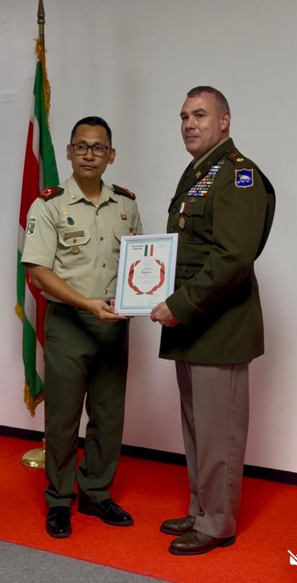 Majoor Carl Stearns van de South Dakota Army National Guard is onderscheiden voor zijn uitstekende inzet als Bilaterale Zaken Officier bij de Amerikaanse Ambassade in Suriname.