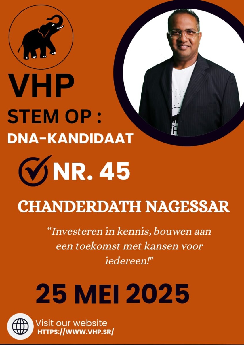 Chanderdath Nagessar is een kandidaat (DNA) van de Vooruitstrevende Hervormings Partij (VHP) in Suriname.