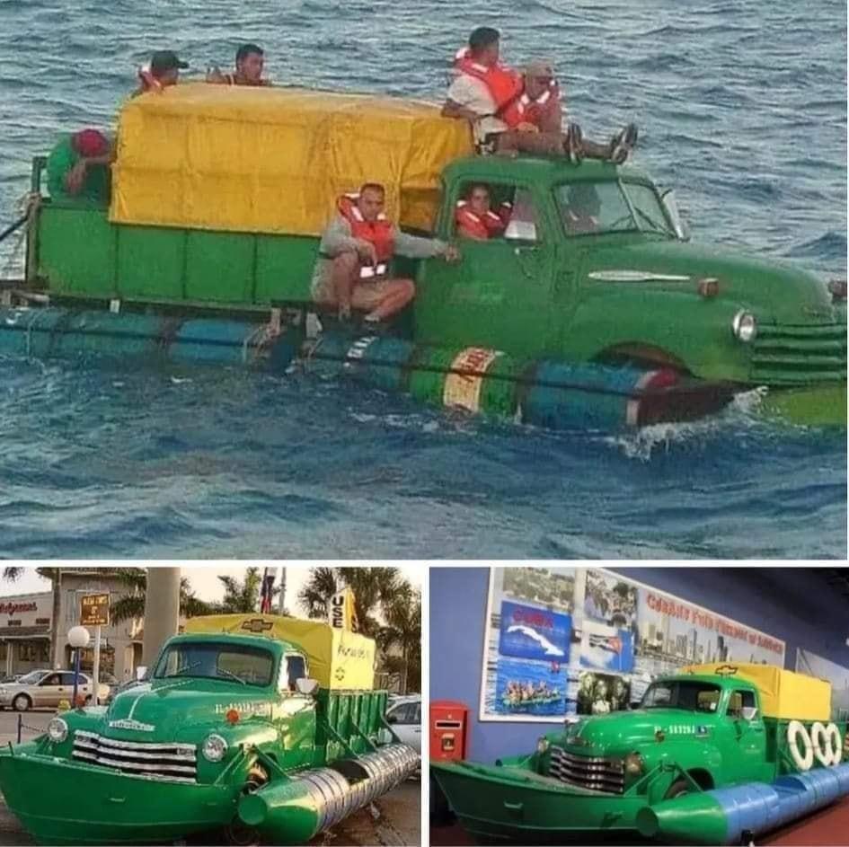 De asielzoekende ‘matrozen’ bestuurden hun Chevy, die eruitzag als een schip, tot op 64 kilometer van Key West.