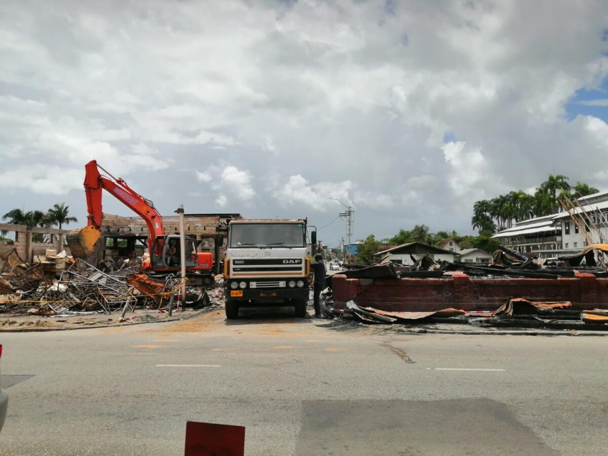 Na de grote brand aan de Henck Arronstraat in Paramaribo van 17 april zijn dinsdag 29 april de opruimingsactiviteiten begonnen.