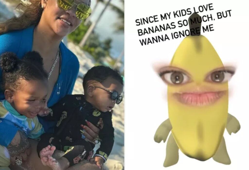 De 37-jarige ster deelde zondag 27 april een Instagram Stories-video van haar ogen en lippen met een bananenfilter. Ze schrijft bij het grappige fragment: “Mijn kinderen zijn dol op bananen, maar ze willen me negeren.”