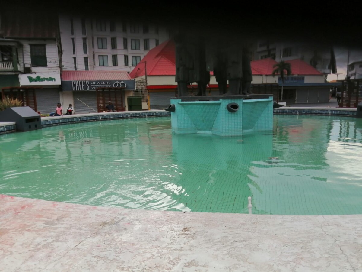 De gemeenschap reageerde geschokt nadat bekend werd dat onbekenden het water van de fontein aan het Vaillantsplein in het centrum van Paramaribo, ook bekend als Spanhoek, met oranje kleurstof hadden ontsiert.