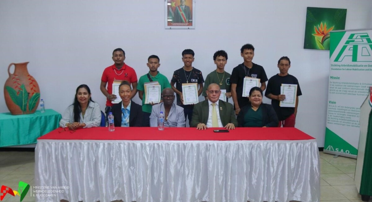Zeven cursisten ontvingen woensdag 14 mei hun certificaat ontvangen voor het succesvol afronden van de vaktraining Lassen Module-2, georganiseerd door de Stichting Arbeidsmobilisatie en Ontwikkeling (SAO) en gefinancierd door de Staatsolie Foundation.