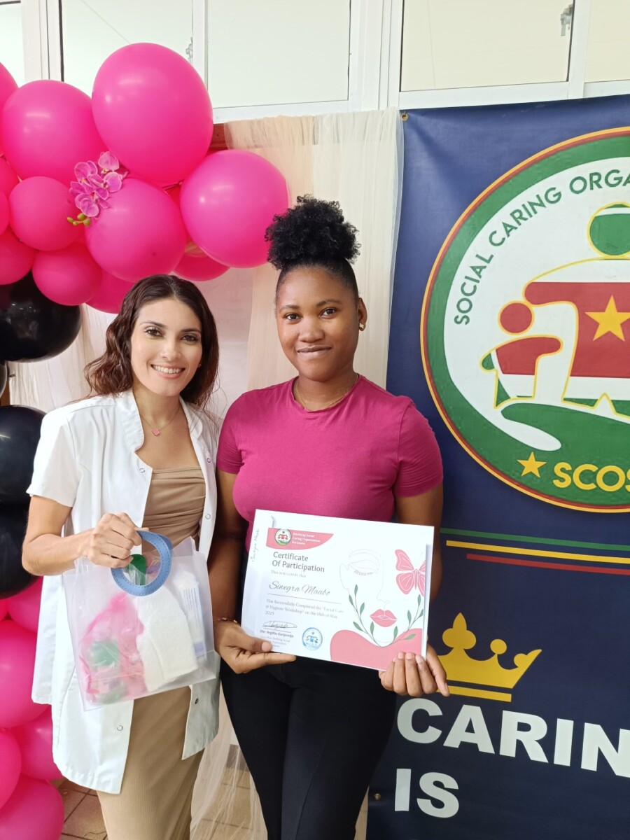 De Stichting Social Caring Organization Suriname (SCOS hield zondag 18 mei), in samenwerking met S. T̅̅éé Beauty Bar, een succesvolle hygiëne workshop voor jongedames in de leeftijdscategorie van 18 tot 30 jaar. De activiteit vond plaats als onderdeel van het jaarlijks terugkerende hygiënekits project van SCOS.