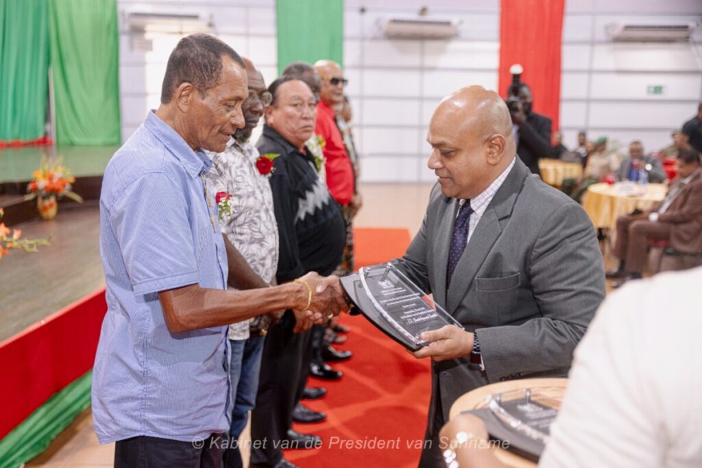 President Chandrikapersad Santokhi sprak de aanwezigen toe en benadrukte het belang van erkenning. “Misschien leeft nog steeds het gevoel dat u ongemerkt bent voorbijgegaan in al die momenten waarop u kracht heeft gegeven aan land, volk en kabinet. Vandaag is een moment van grantangi”, zei hij.