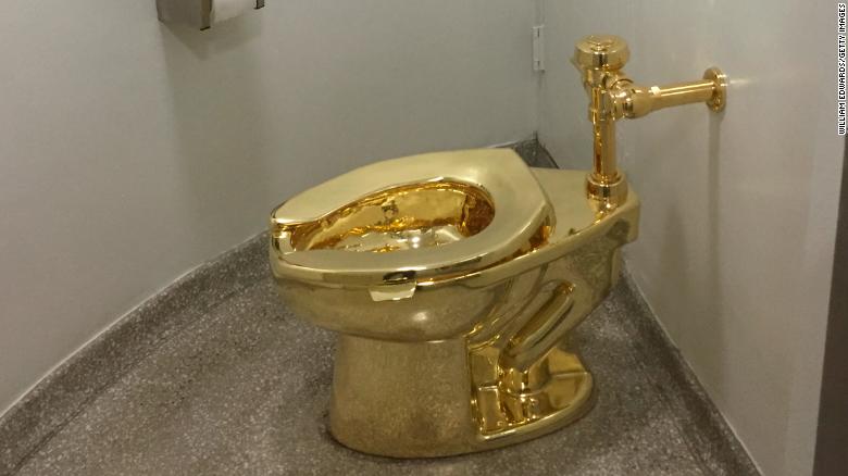 Het toilet woog 98 kilo en was verzekerd voor 6 miljoen dollar. De Italiaanse kunstenaar Maurizio Cattelan noemde de wc ‘America’ als kritiek op de Amerikaanse droom en de excessen in de kunstwereld.