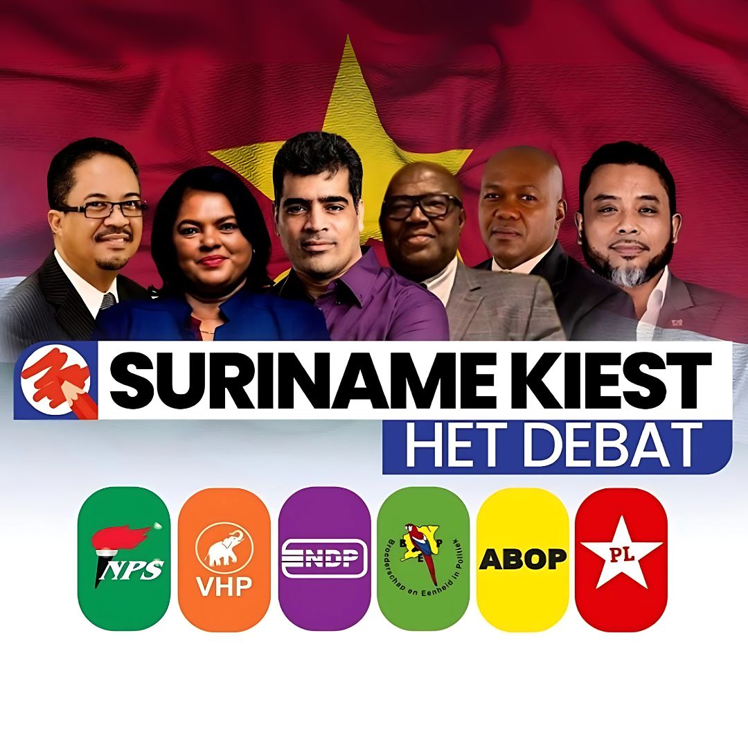 Tijdens een verhit debat in aanloop naar de verkiezingen gingen zes prominente politieke leiders in gesprek over de toekomst van Suriname. Ashwin Adhin (NDP), Krishna Mathoera (VHP), Gregory Rusland (NPS), Raymond Landveld (BEP), Bronto Somohardjo (PL) en een vertegenwoordiger van ABOP wisselden visies uit over infrastructuur, onderwijs, gezondheidszorg en het beheer van olie-inkomsten. Onder leiding van presentatoren Emmanuel Scheeck en Gloria werd duidelijk dat er grote verschillen zijn in aanpak, maar ook gedeelde zorgen over corruptie en politieke wil.