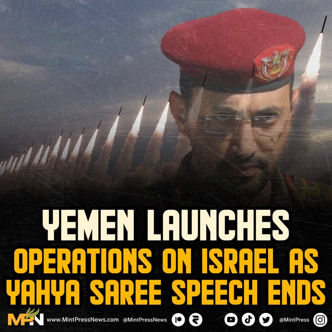 Na de toespraak van brigadegeneraal Yahya Saree, woordvoerder van de Jemenitische strijdkrachten, lanceerde Jemen aanvallen op Israël. Sirenes klonken in bezet Al-Quds (Jeruzalem) en andere regio’s. Een ballistische raket trof luchthaven Ben-Gurion, wat het luchtverkeer een uur lamlegde en duizenden kolonisten naar schuilkelders dreef. Daarnaast werden Yaffa-drones ingezet voor aanvallen op doelen in Jaffa en Haifa.
