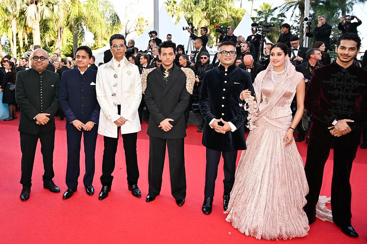 Op de rode loper trok Janhvi Kapoor de aandacht in een op maat gemaakte Tarun Tahiliani-ensemble, geïnspireerd op haar moeder Sridevi. Ishaan Khatter verscheen in een wijnrode fluwelen outfit van Gaurav Gupta, terwijl Karan Johar schitterde in een creatie van Manish Malhotra.