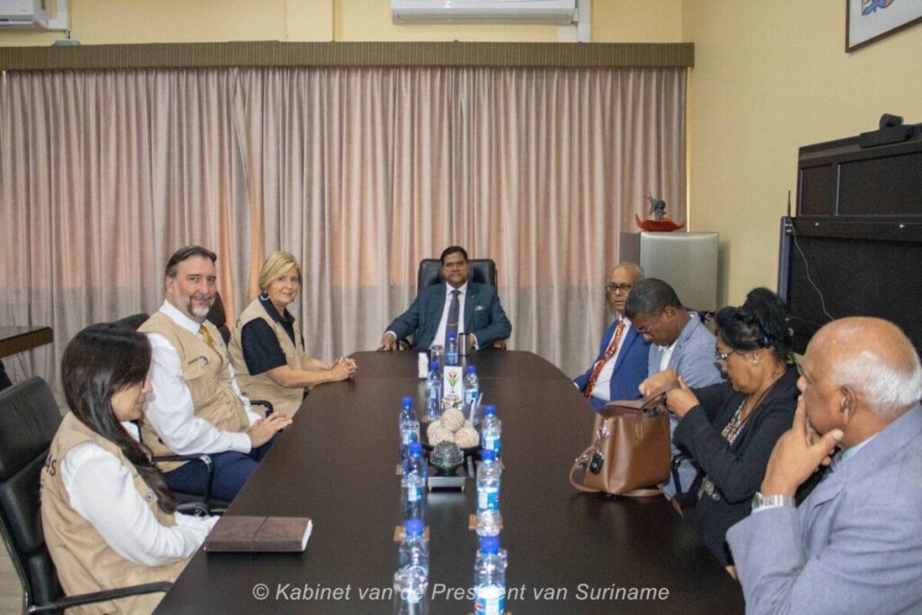 President Chandrikapersad Santokhi ontving donderdag 22 mei een delegatie van de Organisatie van Amerikaanse Staten (OAS), die in het land is om de komende verkiezingen te observeren.
