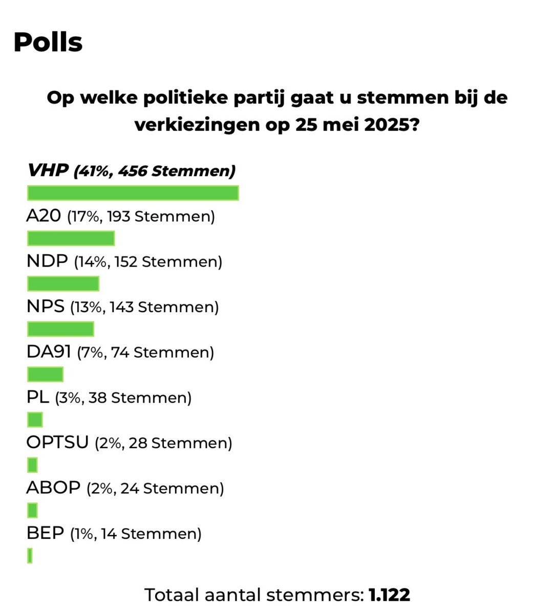 In een recente webpeiling van Dagblad Suriname blijkt de Vooruitstrevende Hervormingspartij (VHP) een duidelijke voorsprong te hebben bij de verkiezingen op 25 mei.