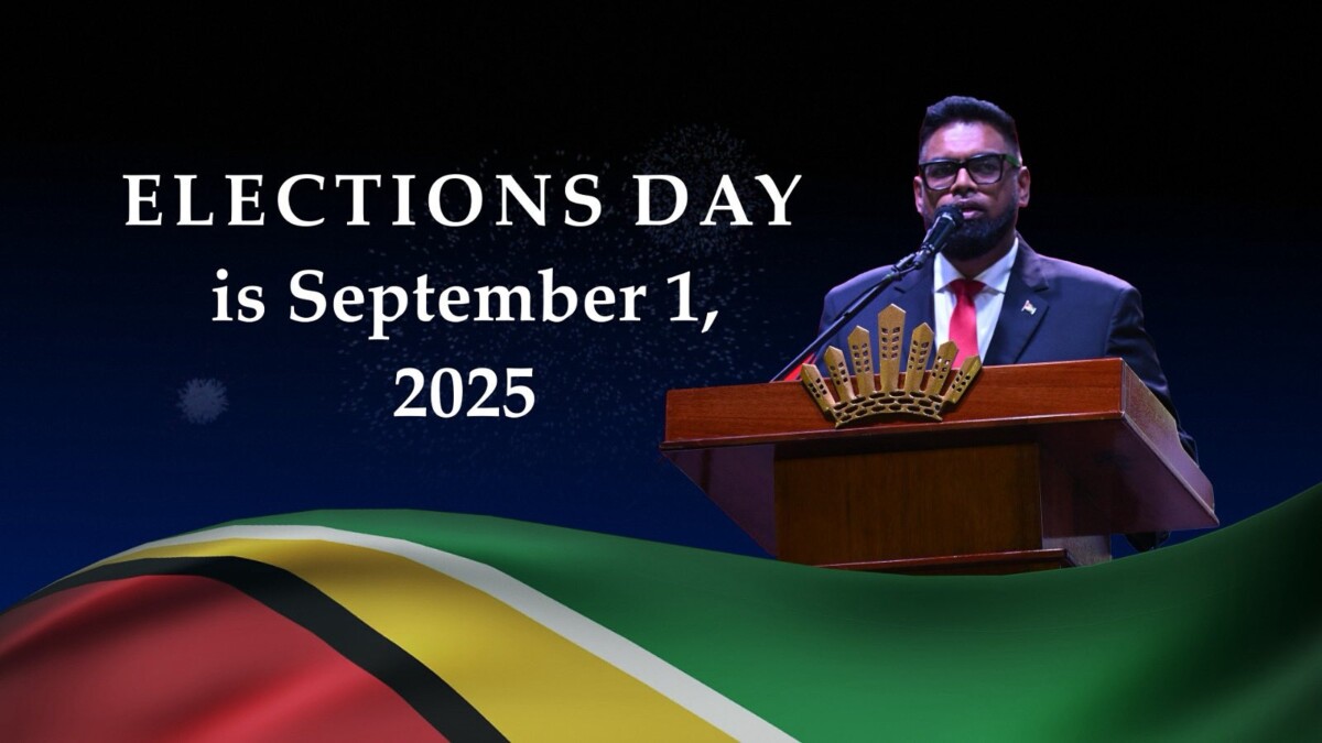 President Irfaan Ali van Guyana heeft tijdens de 59e onafhankelijkheidsviering in Burbis bekendgemaakt, dat de nationale en regionale verkiezingen in Guyana op 1 september 2025 zullen plaatsvinden.