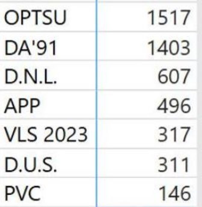 Om een zetel te behalen van 5.100 stemmen (vereist voor één zetel), zouden de partijen als volgt scoren: