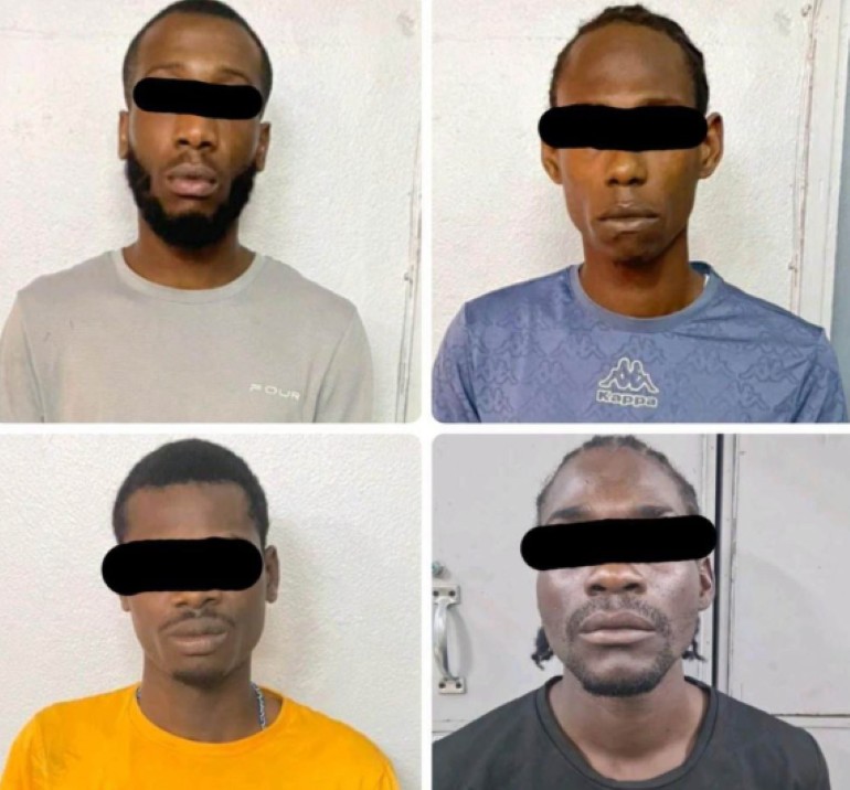 Leden van Regio Bijstand Team-Paramaribo (RBTP) hebben woensdag 29 mei de verdachten J.P. (29)., L.A. (26), N.H. (24) en J.J. (31) opgespoord en in de kraag gevat, nadat zij een taxichauffeur dinsdag 28 mei hadden beroofd in de Christopher Kerstenstraat.