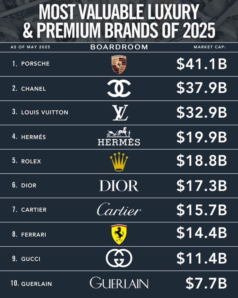 Voor het achtste jaar op rij staat Porsche bovenaan als meest gewilde luxe automerk. Het Duitse merk, opgericht in 1931, blijft kopers wereldwijd aantrekken met iconische modellen zoals de 911, Macan en Cayenne. In 2023 werden ruim 310.000 Porscheās afgeleverd, met de Cayenne als bestverkochte model.