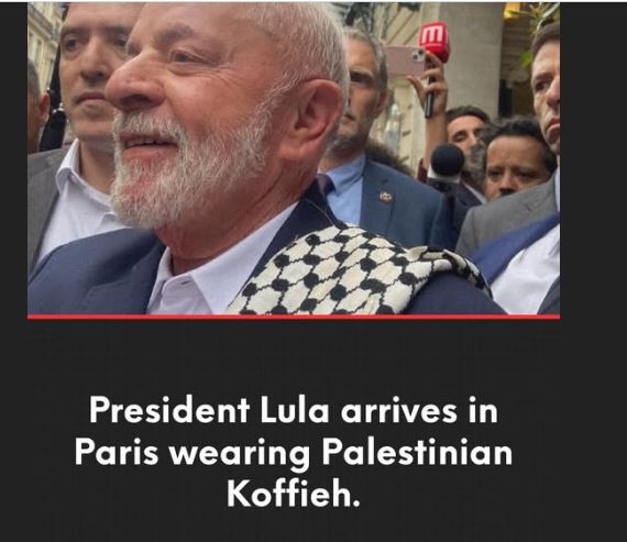 President Lula van Brazilië arriveerde gisteren in Parijs voor een officieel gesprek met president Macron. Opvallend was zijn keuze voor een Palestijnse kufiyah – een sjaal die symbool staat voor verzet en solidariteit. Met dit gebaar benadrukt Lula de strijd voor vrijheid en rechtvaardigheid, niet alleen voor Palestina, maar voor alle onderdrukte volkeren. Brazilië bevestigt hiermee opnieuw zijn steun aan de Palestijnse zaak en het internationaal recht.