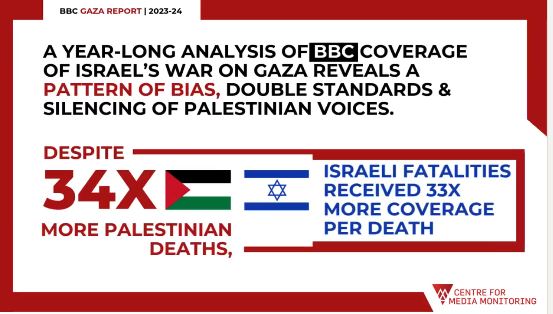 - Verzwegen bezetting: Slechts 0,5% van de BBC-artikelen vermeldde de Israƫlische bezetting van Palestina. Apartheid, nederzettingen en verdrijvingen werden stelselmatig genegeerd.