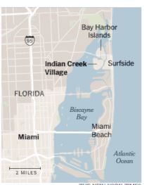 INDIAN CREEK VILLAGE, Florida — Op een kunstmatig eiland ten noorden van Miami hebben de titanen van verschillende industrieën hun toevluchtsoord gevonden. Jeff Bezos, de oprichter van Amazon, heeft drie eigendommen verzameld langs dezelfde kustlijn als de voetballegende Tom Brady, en Ivanka Trump en haar schoonzoon Jared Kushner, kinderen van voormalig president Donald Trump.