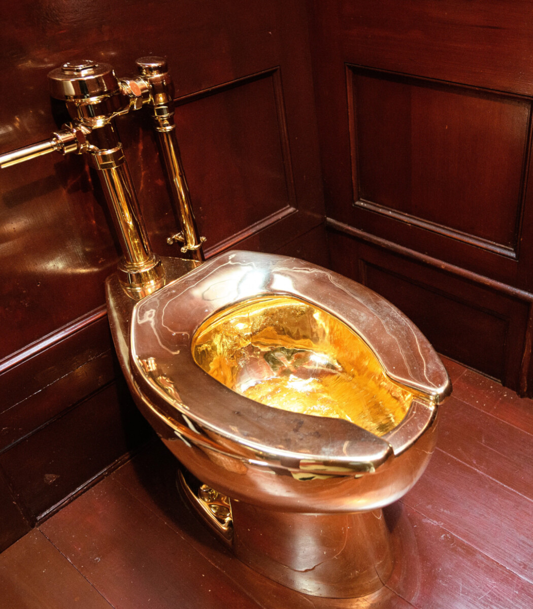 Het toilet is een kunstwerk van de Italiaanse kunstenaar Maurizio Cattelan. De wc is ongeveer zes miljoen euro waard en stond in het Blenheim Palace. Daar konden bezoekers het toilet gebruiken als onderdeel van een tentoonstelling. De diefstal zorgde voor waterschade aan het monumentale pand.