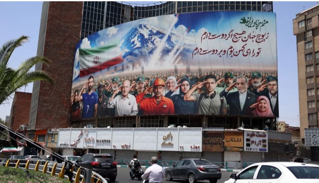 Teheran is in rouw en in gevechtsmodus. Op een gebouw in de hoofdstad werd op 22 juni een spandoek opgehangen met de tekst: “Wij zijn allemaal soldaten van Iran.”