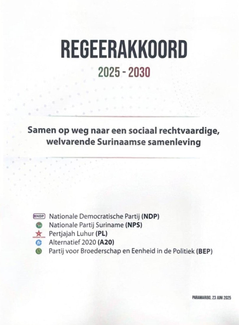Er is door 6 partijen onder voorbehoud en 5 partijen onvoorwaardelijk een regeerakkoord getekend dat als grondslag moet dienen voor het regeerbeleid van de komende 5 jaren. Alle politieke partijen moeten zich daarin terugvinden en het electoraat moet de garantie hebben dat nu uitgevoerd zal worden waarvoor ze hebben gestemd.