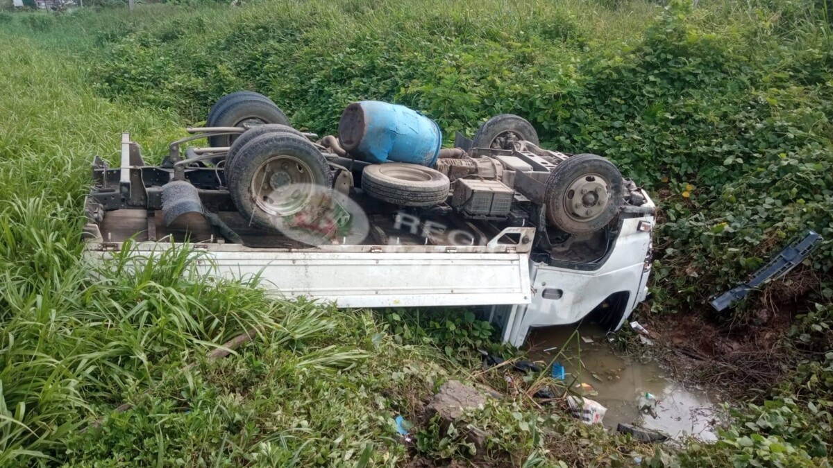 Kort nadat hij de Petrus Pletweg (Republiek) was gepasseerd, merkte hij op dat het stuur vast zat en de remmen niet meer werkten. Hierdoor verloor hij de controle over het voertuig, met als gevolg dat de vrachtwagen in de trens terechtkwam en over de kop sloeg.