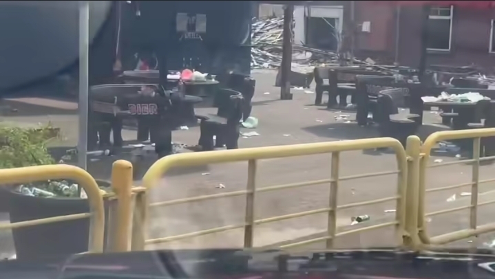 De volgende ochtend, rond 10.30 uur, was het centrum een ware puinhoop.