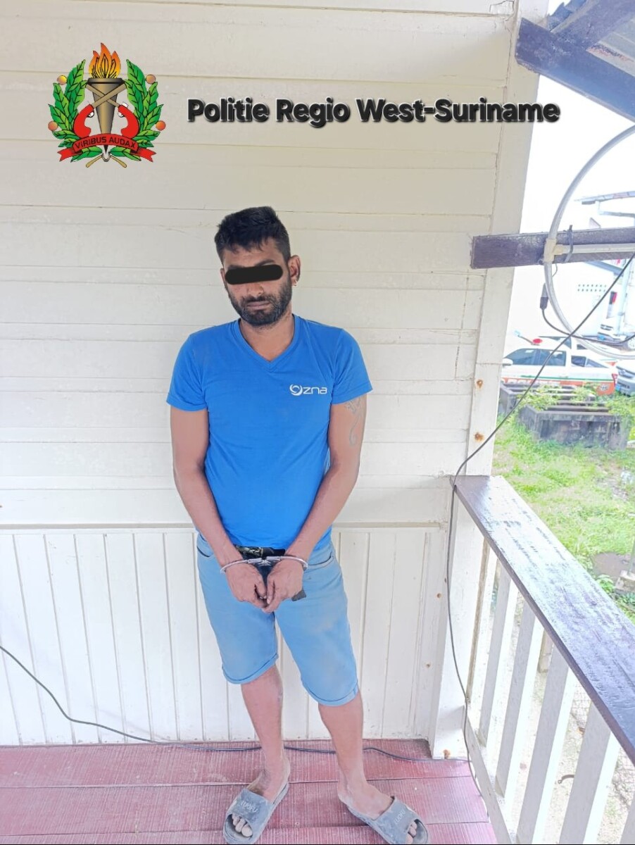 De verdachte K.P. (35) is zondag 13 juli door leden van het Regio Bijstandsteam West (RBTW) aangehouden op zijn woonadres aan de Ramadhar Rajaramweg in het ressort Corantijnpolder voor overtreding van de Vuurwapenwet.