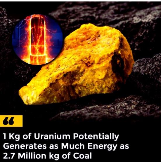 💥 1 kilogram uranium kan evenveel energie opwekken als 2,7 miljoen kilogram steenkool.