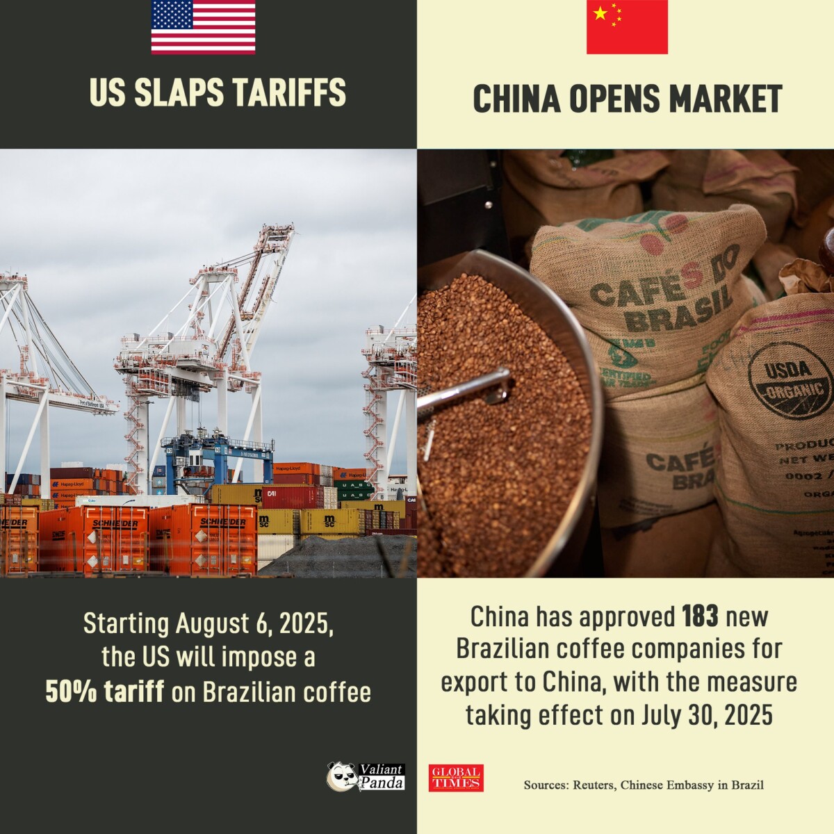 China is Brazilië’s belangrijkste handelspartner, terwijl de VS een grote afnemer is van onder andere Braziliaans rundvlees en sinaasappelsap. In juni bedroeg de Braziliaanse koffie-export naar de VS in totaal 440.034 zakken van 60 kilo, 7,87 keer meer dan de Braziliaanse verkoop aan China van bijna 56.000 zakken die maand, volgens handelsgegevens verzameld door branchelobby Cecafe.