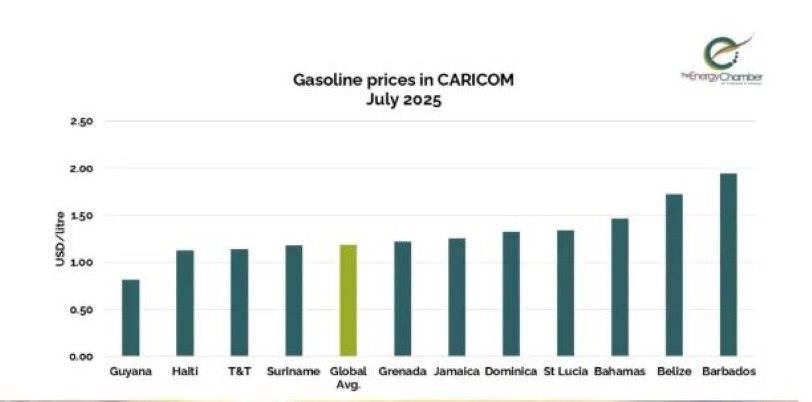 In Guyana kostte benzine in juli ongeveer US$0,81 per liter, terwijl het wereldgemiddelde in het tweede kwartaal op US$1,19 lag. Aan de andere kant van het spectrum was Barbados het duurst binnen CARICOM, met bijna US$2,00 per liter.