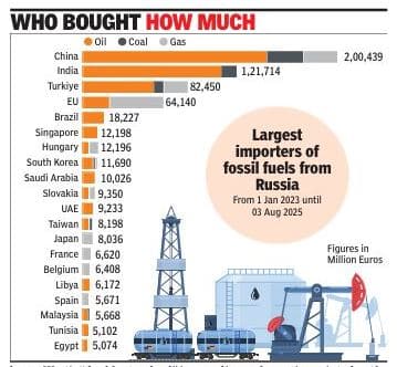 In dezelfde periode haalde de EU €293 miljard aan Russische fossiele brandstoffen binnen, terwijl China €200 miljard en India €121 miljard importeerde. Westerse landen geven publiekelijk kritiek, maar blijven zelf inkopen doen, wat in India als dubbele moraal wordt gezien.