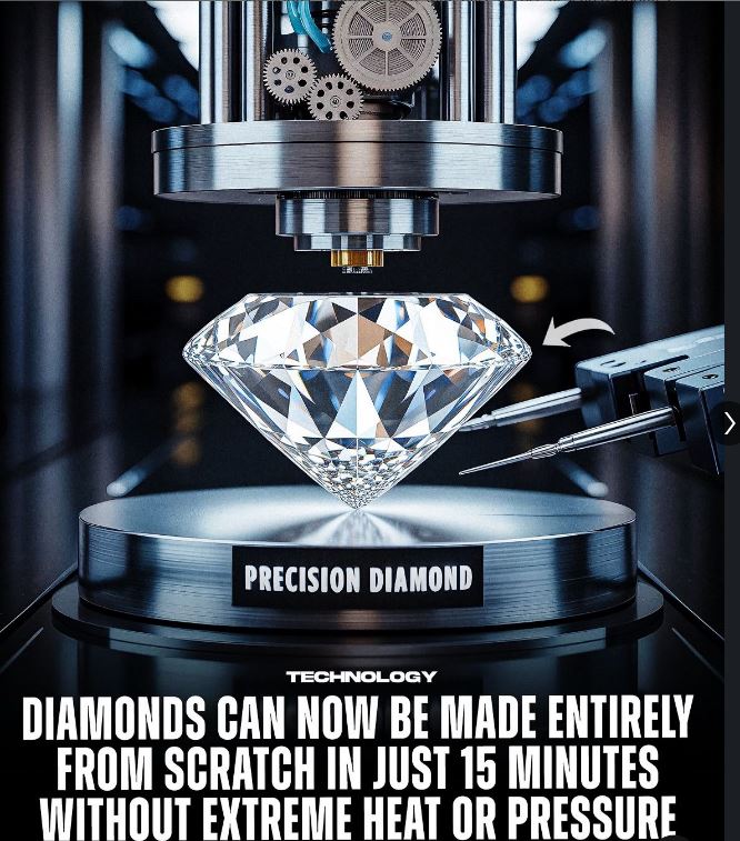 In een baanbrekende wetenschappelijke doorbraak hebben onderzoekers een methode ontwikkeld om zuivere diamanten te creëren in slechts 15 minuten, zonder extreme hitte of hoge druk. Met behulp van plasma-ondersteunde chemische dampafzetting (PECVD) worden koolstofatomen bij kamertemperatuur herschikt tot een diamantrooster. Dit milieuvriendelijke en kostenefficiënte proces kan de $90 miljard diamantmarkt opschudden en toepassingen vinden in sieraden, kwantumcomputers, elektronica en optica.