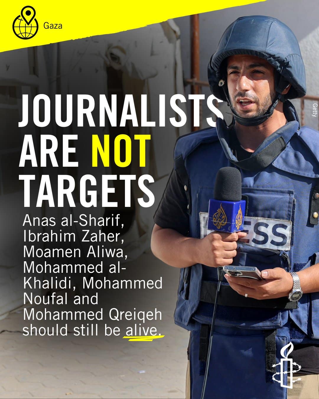 Israël heeft enkele dagen terug een groep van 5 journalisten van de internationale nieuwszender Al Jazeera vermoord. Het was een gerichte aanval om de journalist Anas al-Sharif te vermoorden. Hij wordt nu ervan beschuldigd betrokken te zijn in het verzet van het Palestijnse volk tegen de bezetting van hun land door joden en joodse kolonisten die de joodse staat Israël stichtten. Zelfs de nieuwszenders CNN en BBC die pro-Amerikaans en pro-Israël zijn, geven aan dat er daarvoor geen bewijs is.