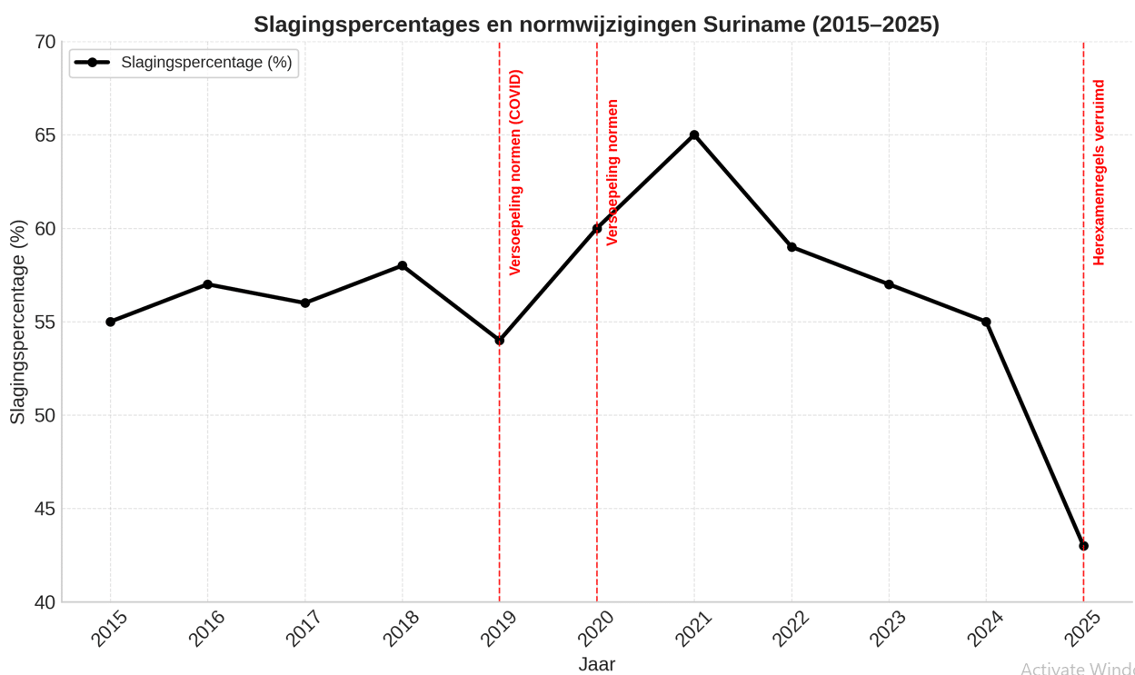 In tien jaar tijd is de slagings- en overgangsnorm in het Surinaamse onderwijs meerdere keren aangepast. Officieel ‘om leerlingen te helpen’, maar in de praktijk vooral om statistieken op te poetsen.