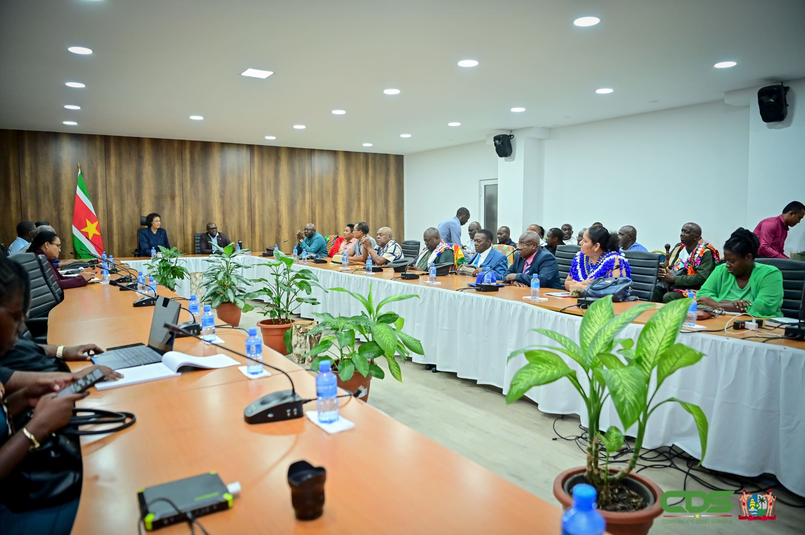 Een delegatie van marron- en inheemse granmans, verenigd in de organisatie Fiti Makandra, sprak vrijdag met president Jennifer Simons over samenwerking, zelfbeschikking en grondenbescherming.