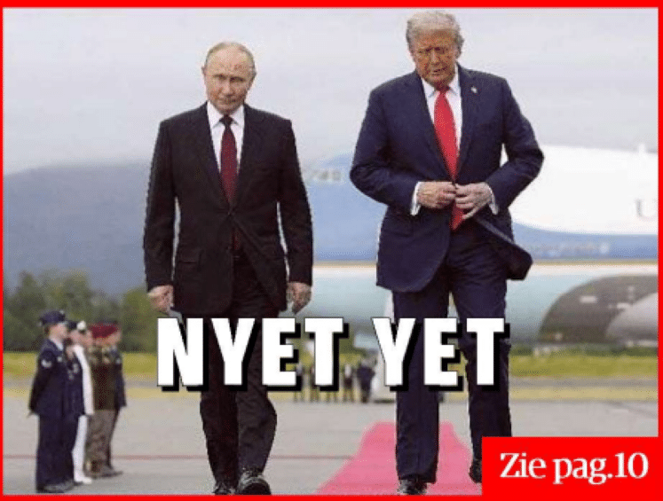 Tijdens een persconferentie op een Amerikaanse luchtmachtbasis in Alaska verklaarde Trump: “We hebben veel besproken en veel punten van overeenstemming gevonden. Maar er is pas een deal als er een echte deal is. Uiteindelijk ligt de beslissing bij Oekraïne.” Poetin waarschuwde Europa ondertussen om “de prille vooruitgang” niet te ondermijnen.