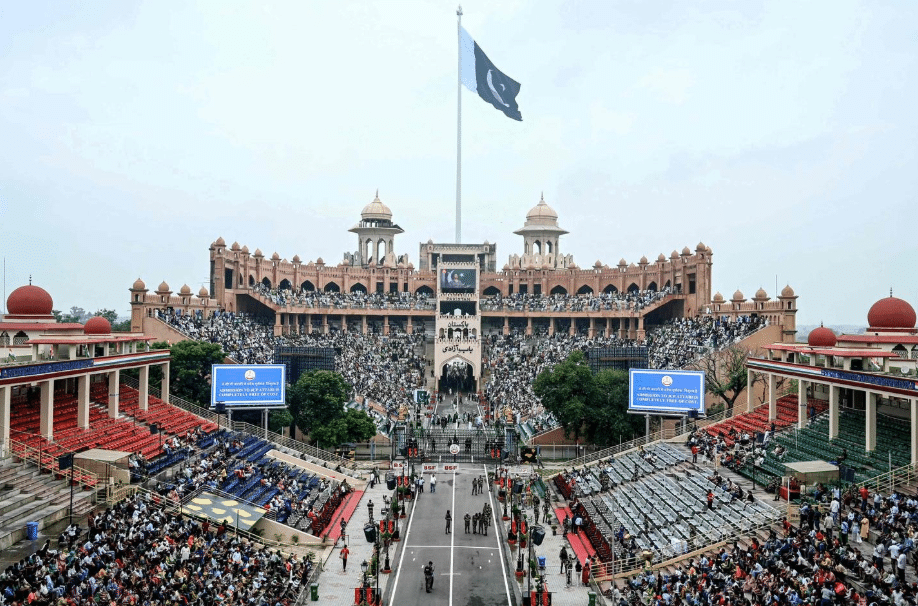 De vlaggenmasten zijn intussen uitgegroeid tot een soort verticale wapenwedloop. In 2017 plaatste India een mast van 110 meter, waarop Pakistan reageerde met een exemplaar van 122 meter. Zes jaar later ging India nog een stap verder met een mast van 127 meter. De wind aan de grens blijkt echter een geduchte tegenstander: de enorme vlaggen scheuren vaak binnen enkele weken, waardoor op gewone dagen kleinere exemplaren worden gehesen.
