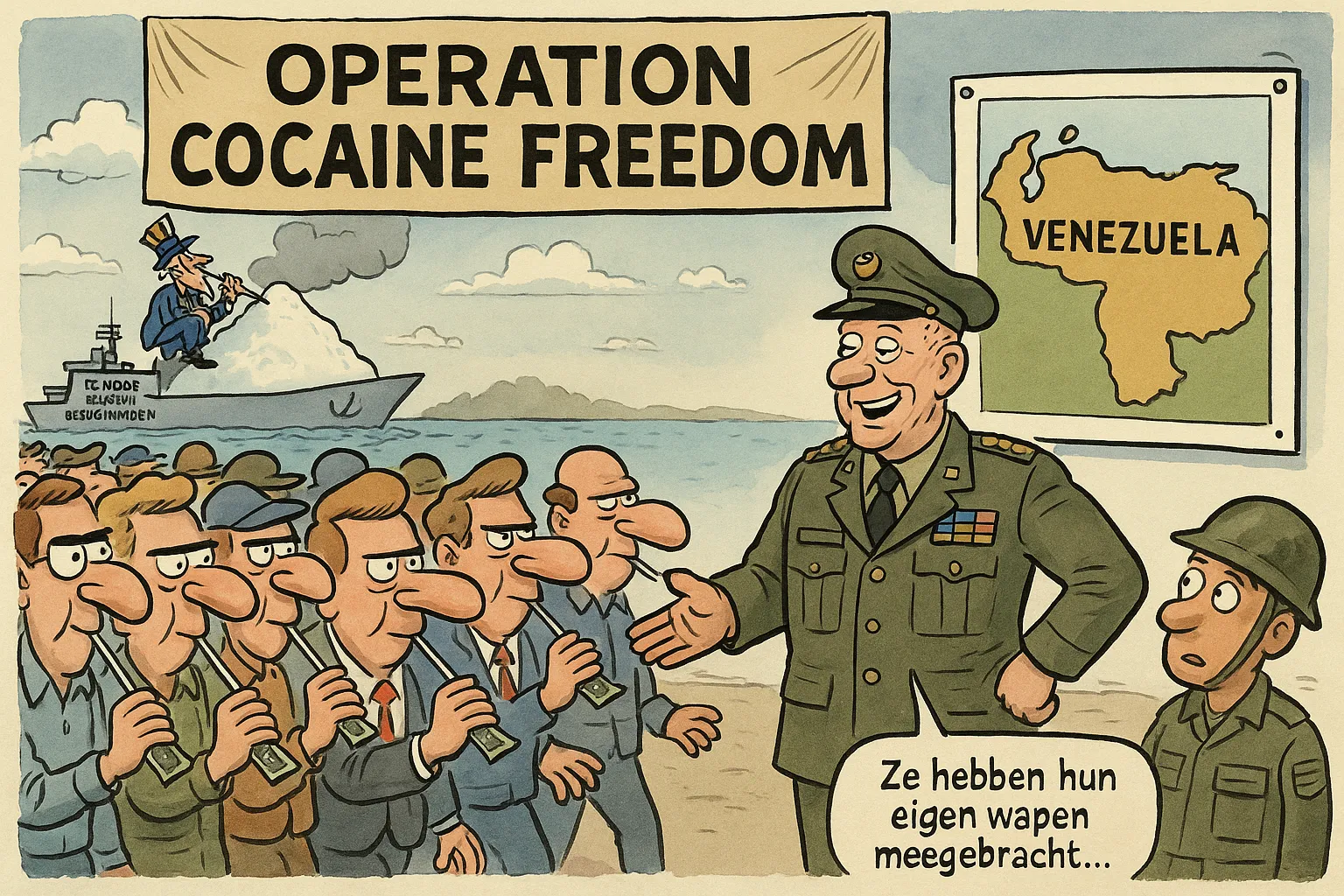 De retoriek over “drugsbestrijding” is inmiddels zo versleten dat niemand ze nog serieus neemt. Als je raketvernietigers inzet tegen vissersboten met cocaïne, ben je geen politiemissie aan het voeren – je bent geopolitiek aan het bedrijven. Net zoals in Irak “massavernietigingswapens” nooit zijn gevonden, en in Afghanistan “democratie” vooral werd geïmporteerd via bomtapijten, dreigt nu “narcotica” het zoveelste rookgordijn te worden.