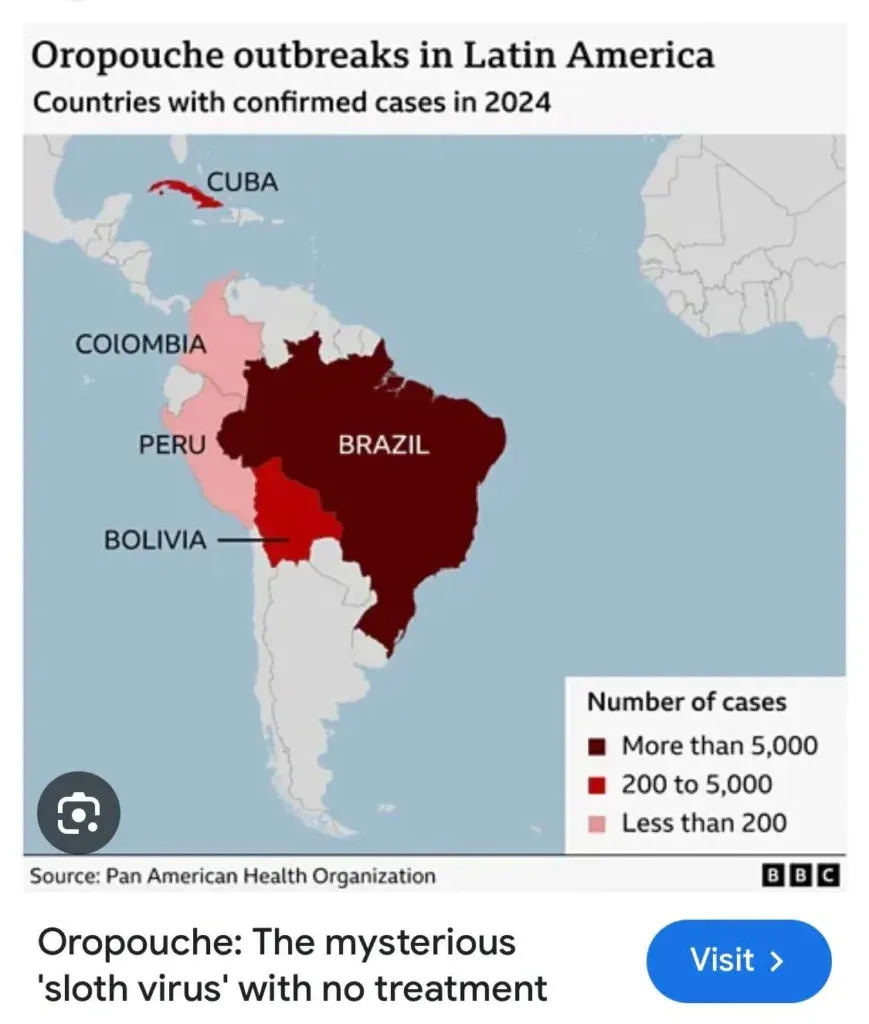 Een nieuw gezondheidsrisico steekt de kop op in Zuid-Amerika; het Oropouche-virus. Dit virus, genoemd naar de Oropouche-rivier in Trinidad, circuleert al langer in landen als Trinidad, Brazilië, Peru, Colombia, maar recent zijn er ook meldingen van uitbraken in buurland Guyana.