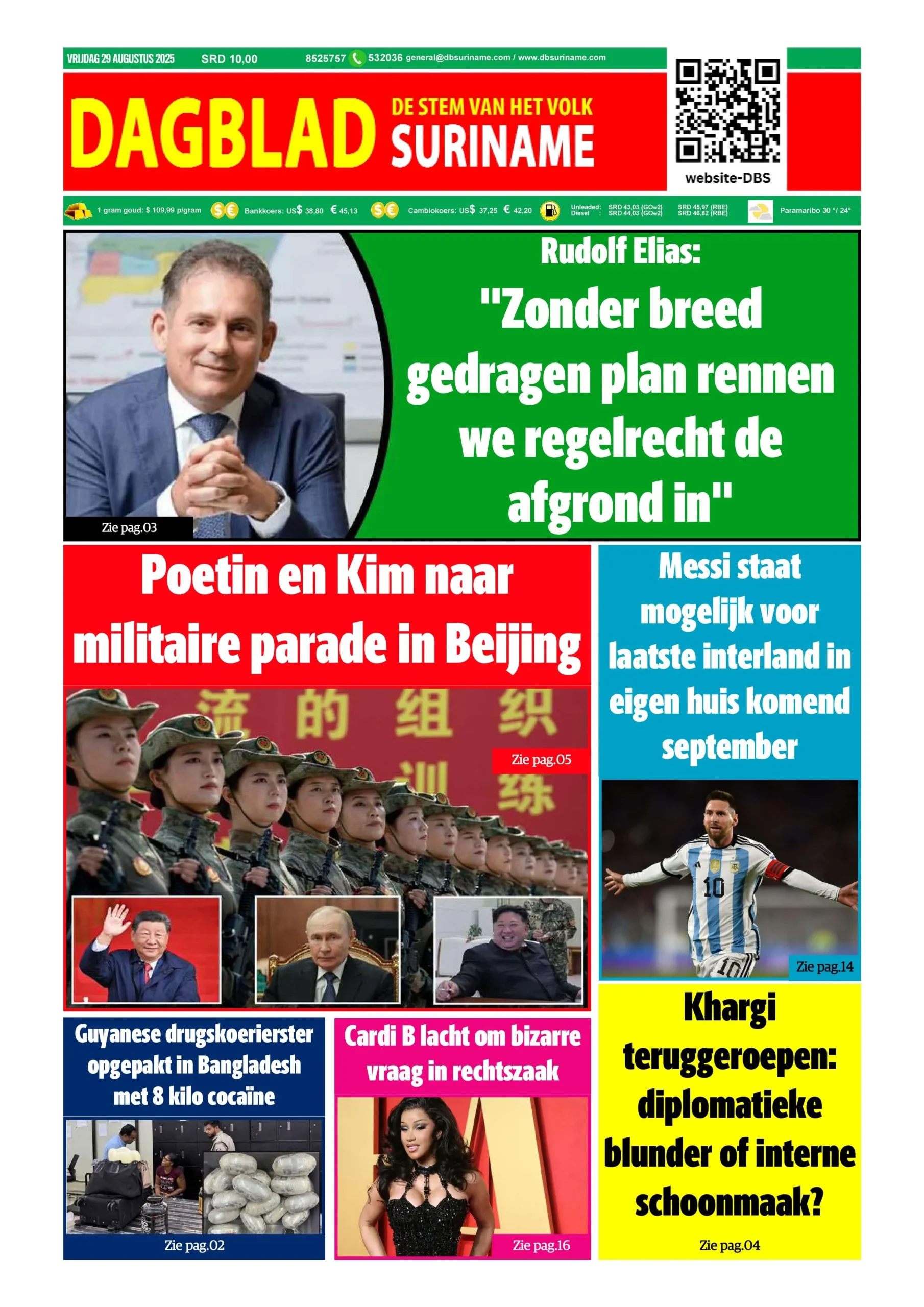 De eigenaar van een constructiebedrijf aan de Mangrasistraat te Beekhuizen, Paramaribo, raakte vrijdag gewond toen twee gewapende mannen het pand binnenstormden. De criminelen arriveerden in een donkerblauwe Toyota Vitz zonder kentekenplaten en trapten de toegangsdeur in. Een schot ging door een glazen deur, waarbij de eigenaar een schampschot aan een bovenbeen opliep en door glasscherven […]