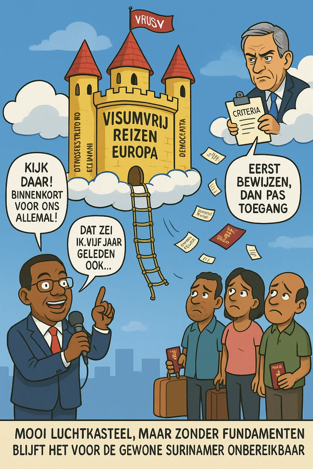 “Zolang de regering blijft vertrouwen op woorden in plaats van daden, zal visumvrij reizen voor Surinamers een symbool van gemiste kansen blijven – en geen werkelijkheid.”