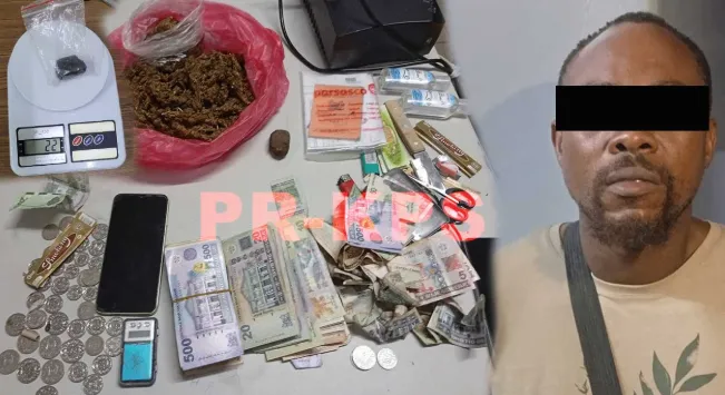 Daarbij is de 36-jarige verdachte S.A. aangehouden met in zijn bezit 22 gram hasj, 193 gram marihuana, een fijn en geldbedragen in SRD en USD.