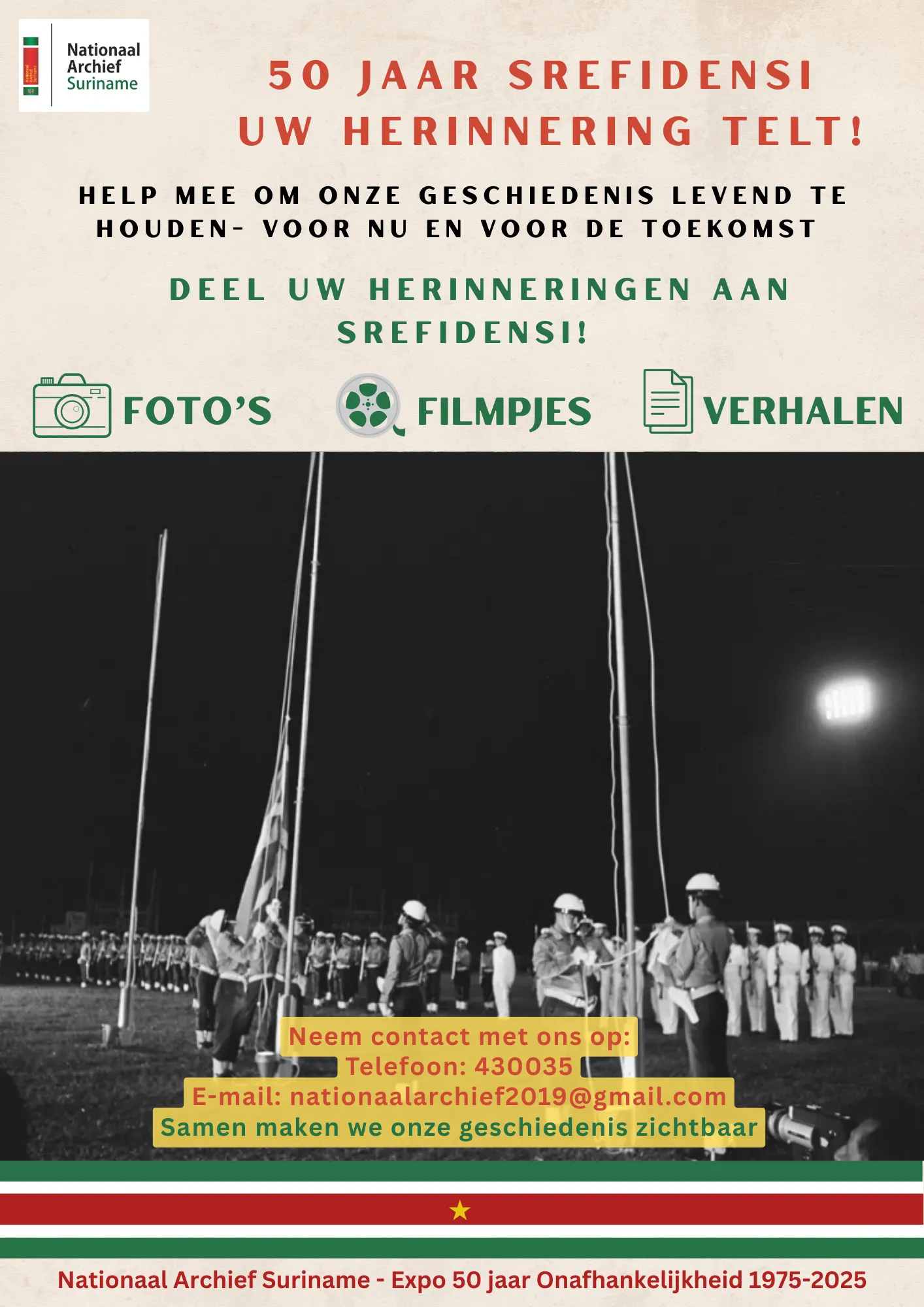 Wij nodigen u van harte uit om dit met ons te delen. Samen maken wij onze geschiedenis zichtbaar – voor nu én voor toekomstige generaties”, zo laat het Nationaal Archief Suriname weten.