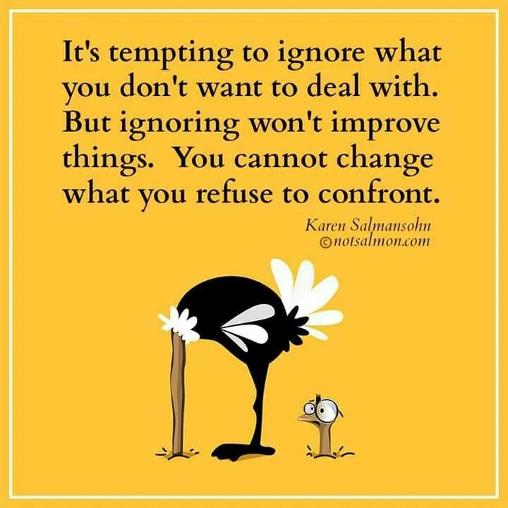 “It’s tempting to ignore what you don’t want to deal with. But ignoring won’t improve things. You cannot change what you refuse to confront.”